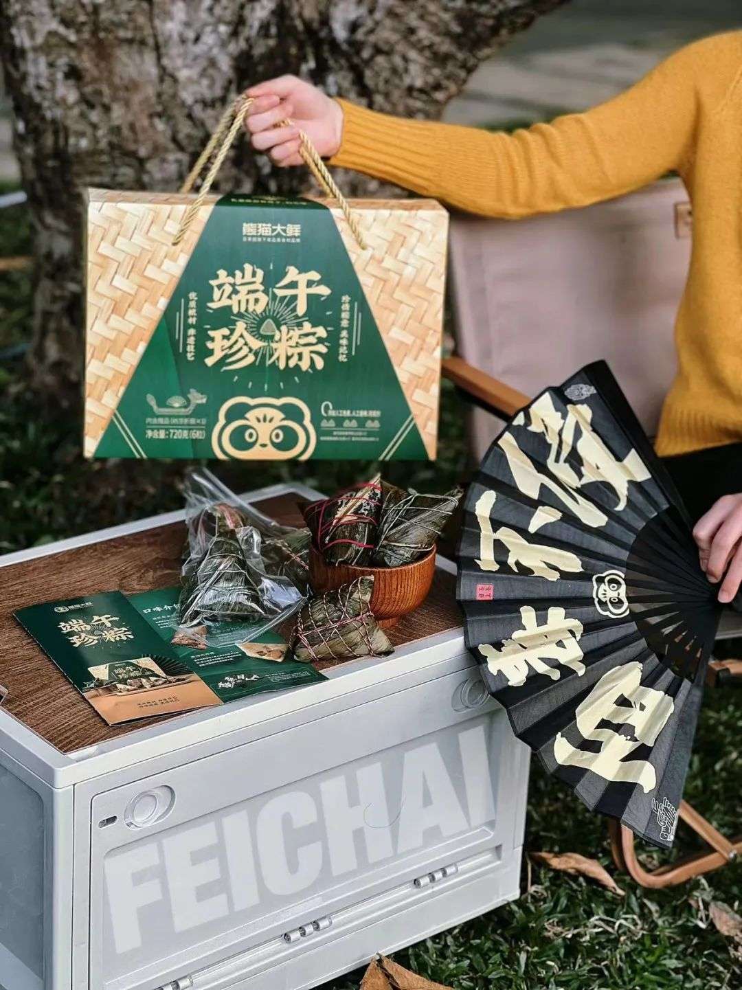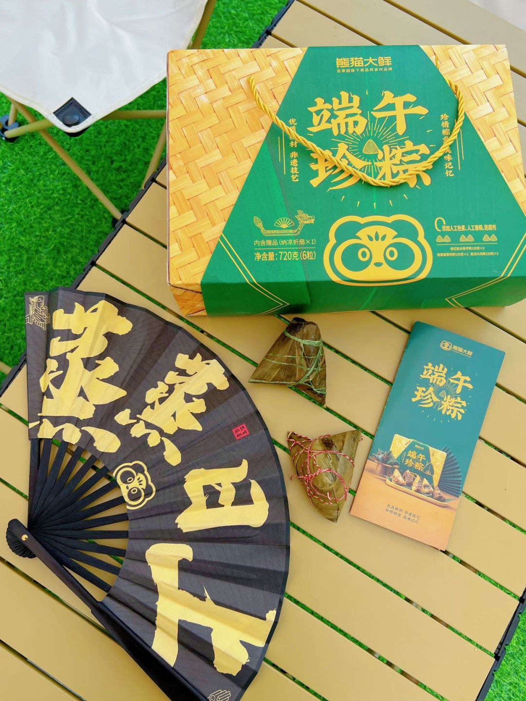 百果园的粽子礼盒,是来自自家旗下高品质食材品牌--熊猫大鲜的端午珍粽礼盒,采用传统竹编+粽叶的设计,传达一个“蒸蒸日上”和“珍粽”的理念。