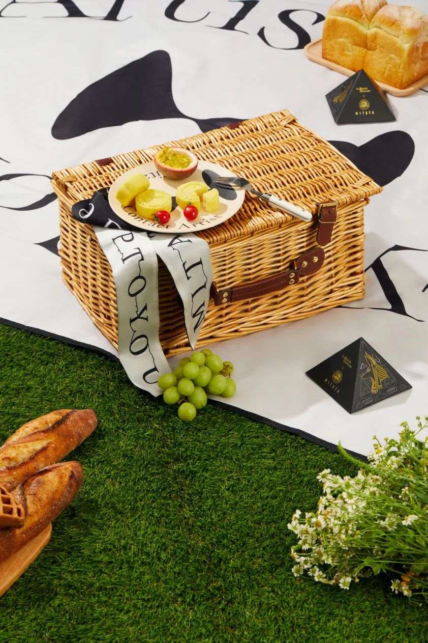 另一款端午礼盒来自艺术格调彩瞳品牌MITATA,以主打的野餐场景为设计核心,包含了野餐篮、MITATA定制艺术餐盘、MITATA定制丝巾,和低糖定制糕点。