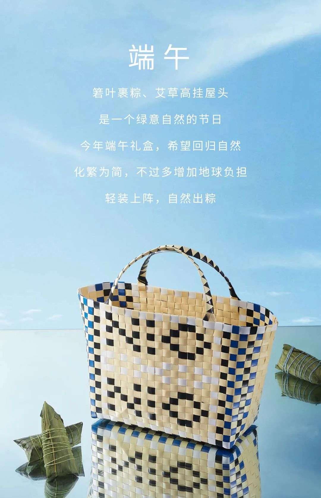 酷狗今年的端午礼盒变成了一个编织包,采用再生材料,践行环保,可斜挎可手提,满足夏日惬意出行。里面装上紫米粽子,可谓:—情有独“粽”,独乐不如“粽”乐。