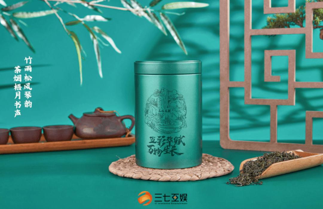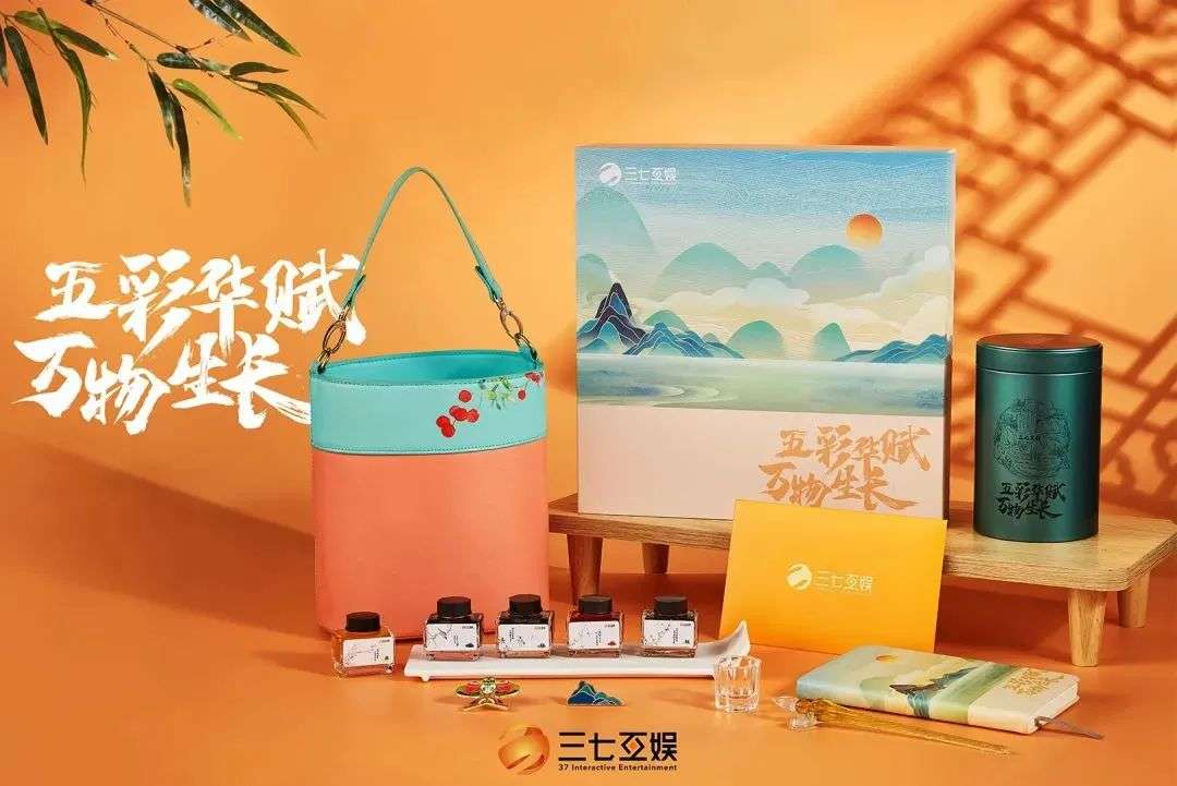 三七互娱的端午礼盒以中国传统色彩为基础打造的礼盒,不仅有中国风的蘸水笔套装,还有乡村振兴产品的公益绿茶,以及笔记本、冰箱贴等各种小物件。