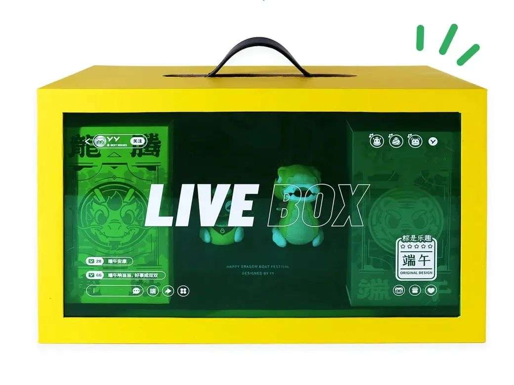 YY直播的端午礼盒主打“LIVE”,打开礼盒就能看到端午限定·虎跃YY熊公仔&龙腾YY熊公仔,还搭配派对龙舟旗、潮流毛巾、主题口罩、粽子等,非常丰富。