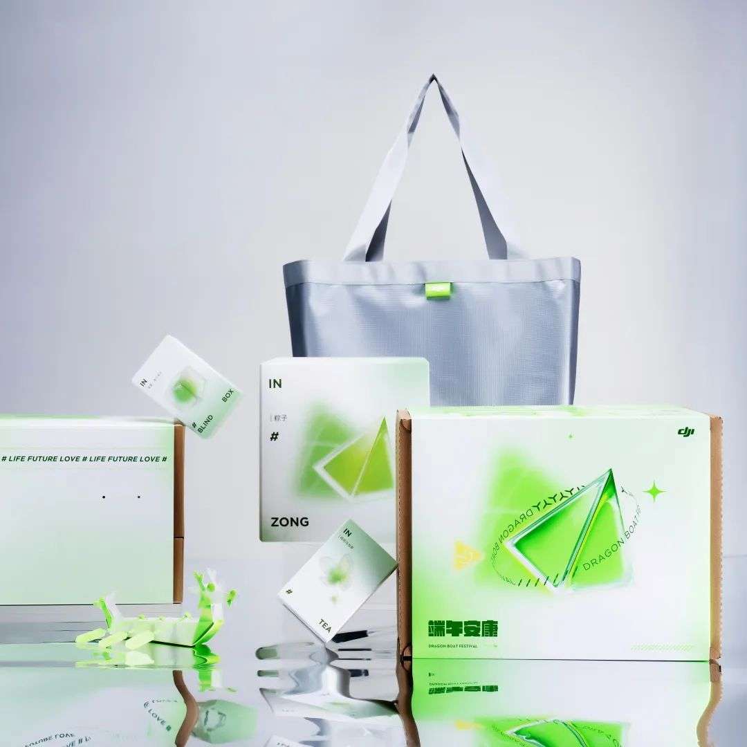 大疆的端午礼盒主题是“爱,生活与未来”,兼具中国风和未来感,在品粽之余,还有桂花乌龙茶。此外,还有DJIer主题手办盲盒,展示大疆职场人的风采。