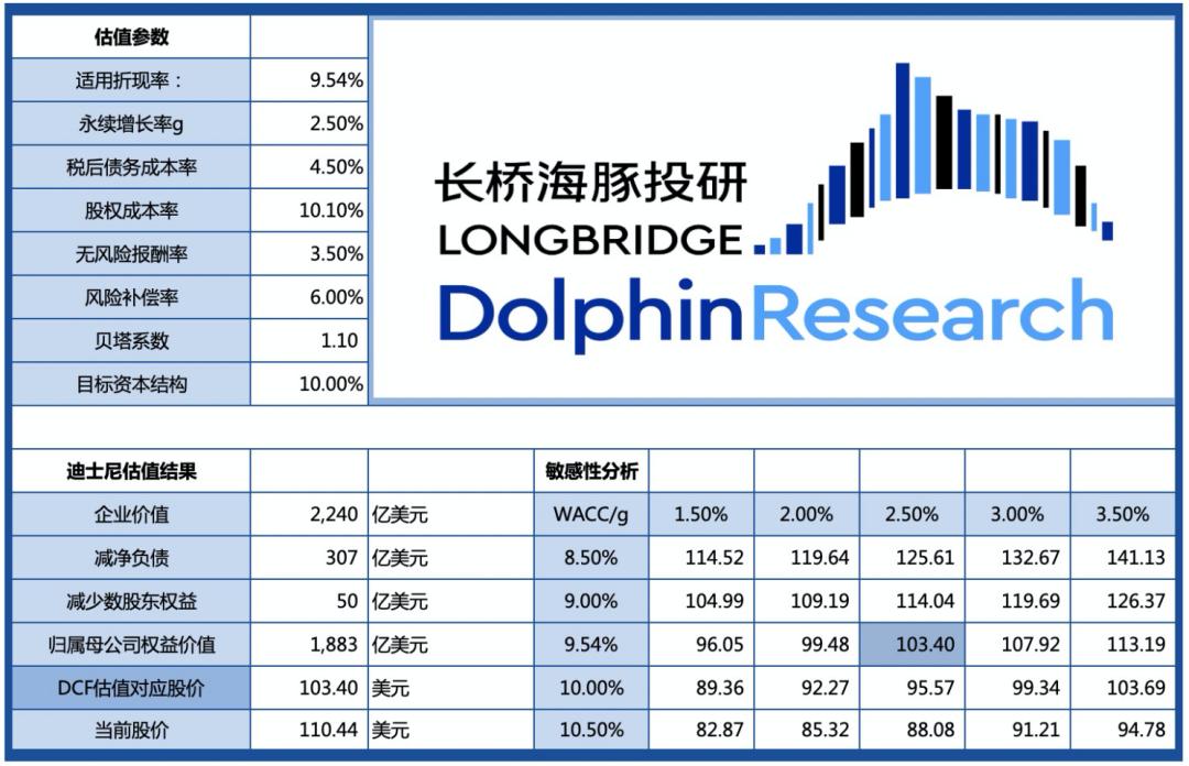 基于以上的逻辑,相较此前假设,海豚君对迪士尼的四大块业务预期主要做了如下调整,以体现迪士尼短期业务变化和宏观环境的通胀风险: