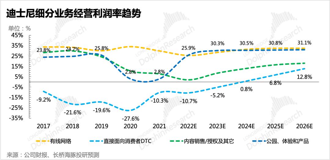 在获利水平上,流媒体业务如管理层期望,在2024年达到盈亏平衡,其他传统业务也会在近两年尽快修复至疫情前水平,其中主题公园业务在产品组合优化下,利润率则较以前更优。
