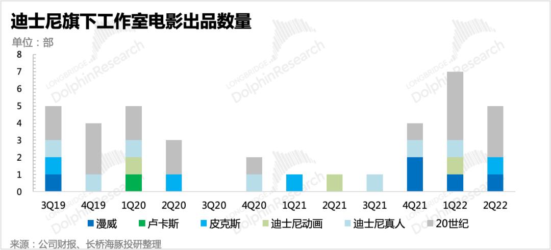 当逐渐走出疫情后,从去年四季度开始,能够看到迪士尼的电影收入在随着影片供给量的增加而大跨步修复,其中漫威大片仍然是贡献主力。