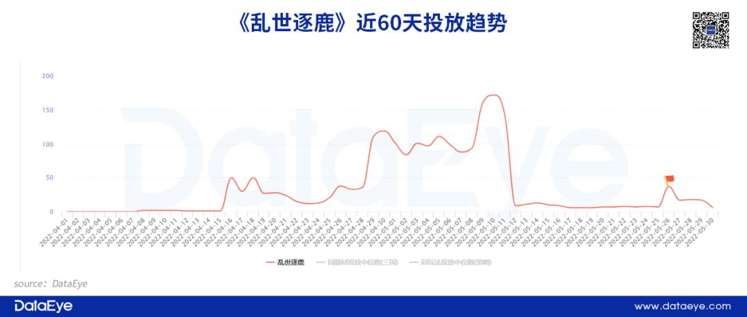 一句话小结:《乱世逐鹿》较低的买量营销和相对单一的创意素材,足以看出项目组希望通过一些低成本方式,补充产品的获量来源。项目组留出更多预算打造品牌。