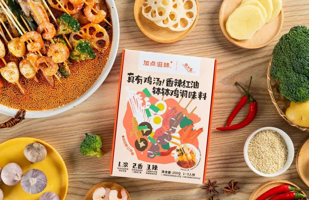 国内市场近几年也出现了不少能起到“一瓶拯救一桌菜”的复合调味品类产品,如小熊驾到的风味腌料系列、加点滋味的真有鸡汤香辣红油钵钵鸡调味料和客家盐焗王 复合调味料、亨氏沙拉汁喷雾、庞师的咖喱酱王等等。不管是在居家场景还是露营场景,都可以让消费者吃上一顿调味绝不会出错的大餐。