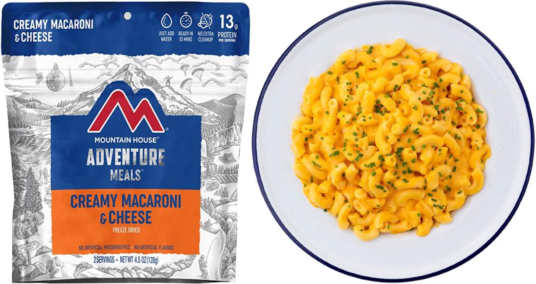 MOUNTAIN HOUSE产品外包装和复水后的成品,图片来源:亚马逊