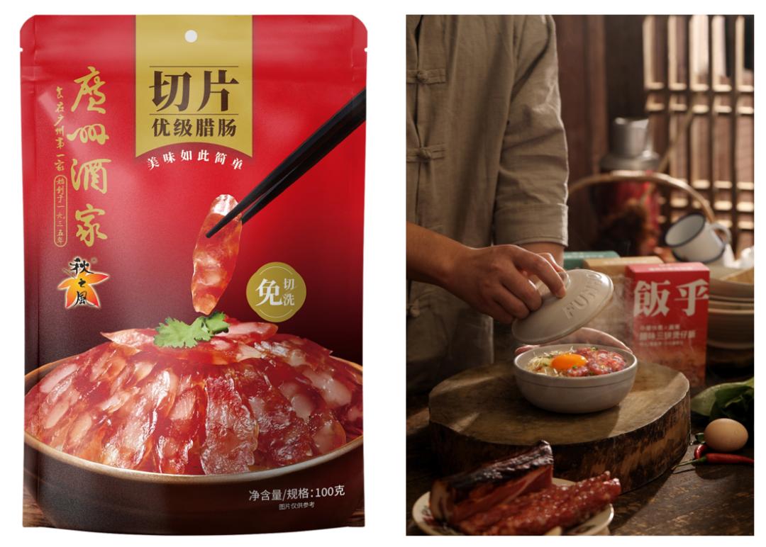像广州酒家推出过免洗免切的小规格切片腊肠产品,真空包装,开袋即可烹饪,就很方便在露营种使用。饭乎煲仔饭这类产品,一盒中搭配了各种配料,甚至避免了带分装调味料的麻烦,也很方便在露营餐中使用。
