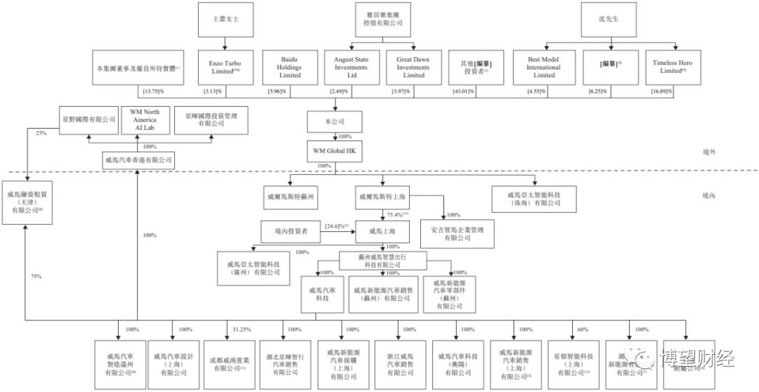 股东及持股方面,IPO前,威马汽车创始人沈晖王蕾夫妇合计持股30.82%,雅居乐集团、百度分别持股6.46%、5.96%。