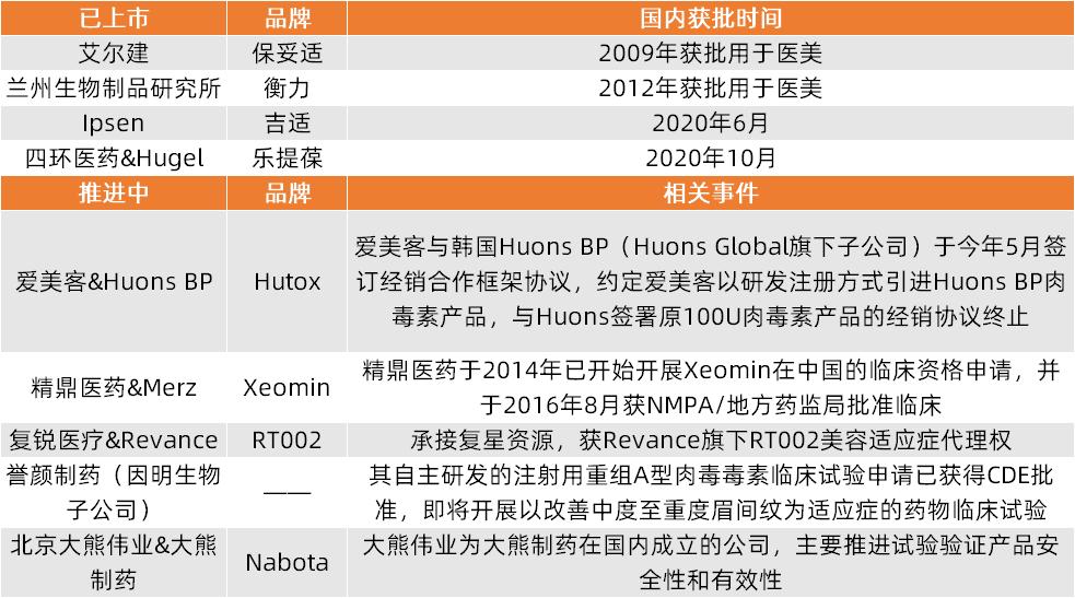 国内肉毒素市场竞争格局(部分)