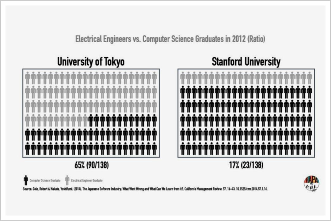 在哈佛大学,计算机科学的毕业生远多于电子工程。而在日本,情况刚好相反。