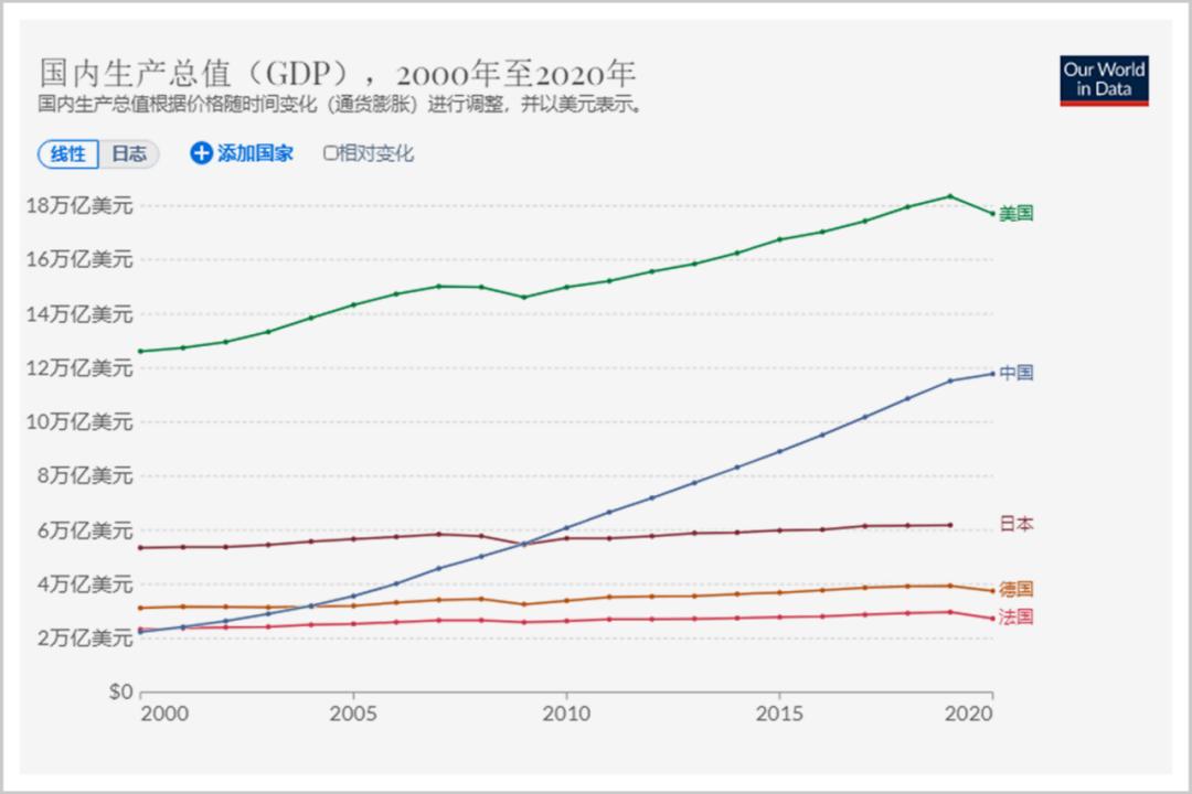 包括日本和欧盟在内,许多国家和地区陷入增长停滞,相对于美国的实力不断衰减,只有中国等少数国家例外。