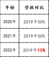 2020年、2021年,每年营收差不多是2019年50%。