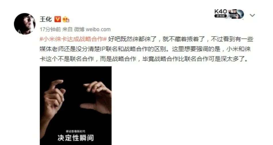 ▲图:小米集团公关部总经理微博
