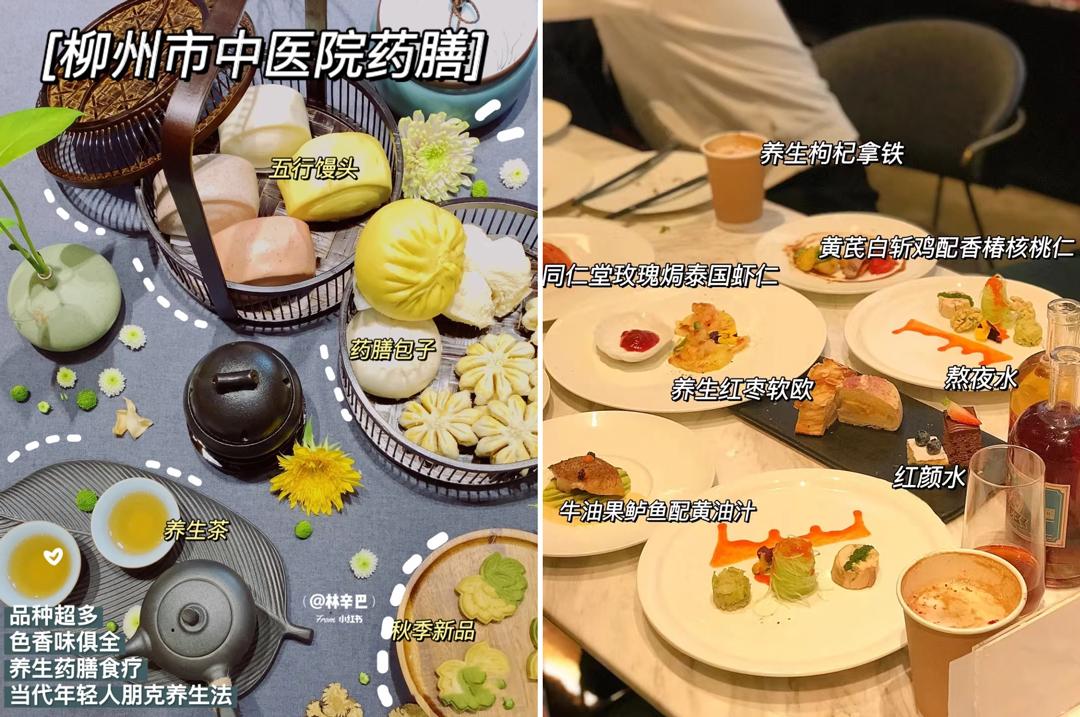 不同的是,广誉远聚贤堂药膳餐厅的菜品,大多为传统滋补餐食。而同仁堂则“中西合璧”,大胆加入西餐元素,比如玫瑰焗泰国虾仁、牛油果鲈鱼配黄油汁。相比之家,柳州中医医院则比较“俏皮”,推出五行馒头、药膳包子、健脾化湿奶茶等单品,链接年轻客群。