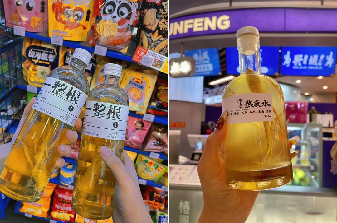 最近,罗森便利店出品的“一整根熬夜水”出圈了。用奇奇怪怪的玻璃瓶做包装,里面可以看到一整根人参,味道是浓浓的人参味带一点甜。