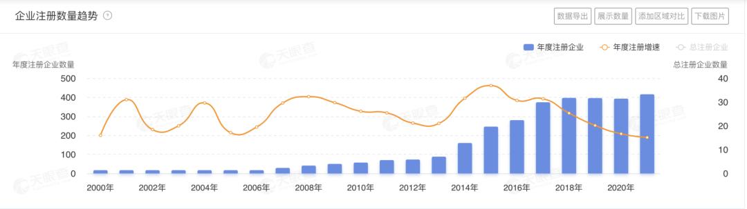 据天眼查数据显示,全国范围内企业名称或经营范围含“养生餐药膳”,且状态为在业、存续、迁入、迁出的相关企业有3400余家。从2017年开始,企业新增注册量逐年递增,近五年平均增速为21.73%,整体呈稳定增长。