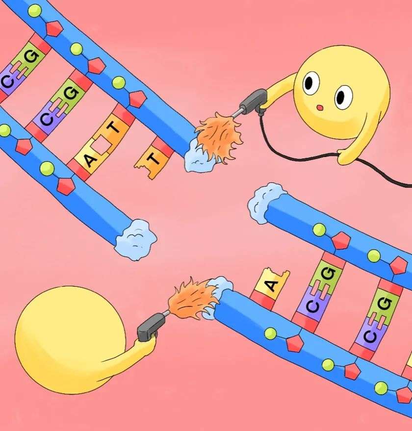 当人类暴露在一些有害环境中,比如,烟草雾,体内的碱基就有可能会受损,这时候就需要把受损的核苷酸拿掉,并换上健康的核苷酸。