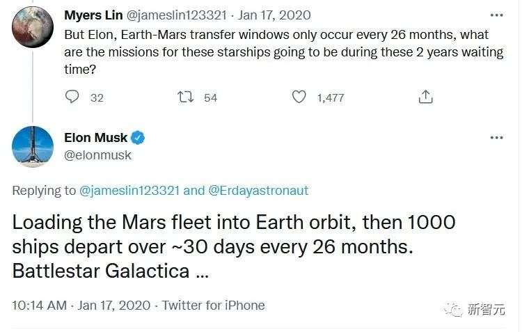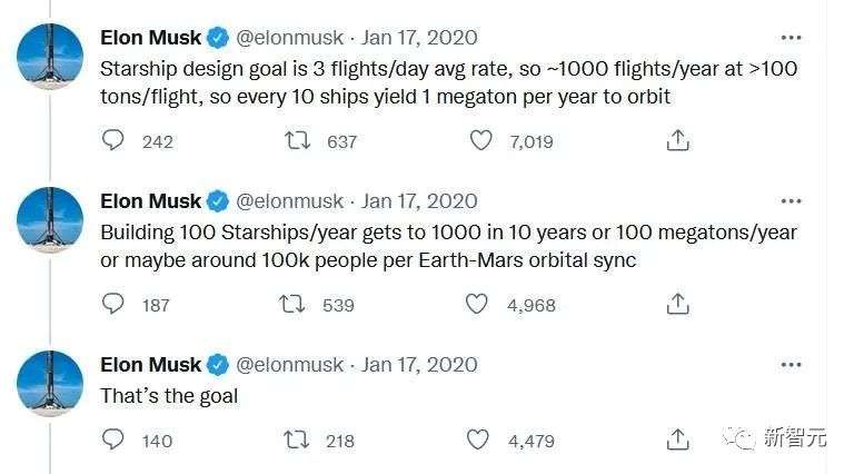 有句讲句,这不是马院士说起火星拓殖野望时第一次提到「千艘星舰」这个数字了。2020年1月份他在社交网站上也列出了类似的展望。