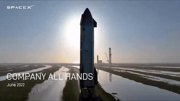 2022年6月5日,马斯克先是在社交网站上放出自家SpaceX的发射基地现场幻灯片式广告片,庆祝SpaceX的可回收「龙飞船」成功对接国际空间站后并载员返回的任务完成、创下了此类任务的最快速纪录。