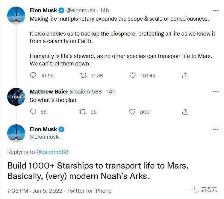2022年6月初,马斯克再弹老调,又一次宣布要送千艘星舰上火星、完成当代的诺亚方舟壮举。