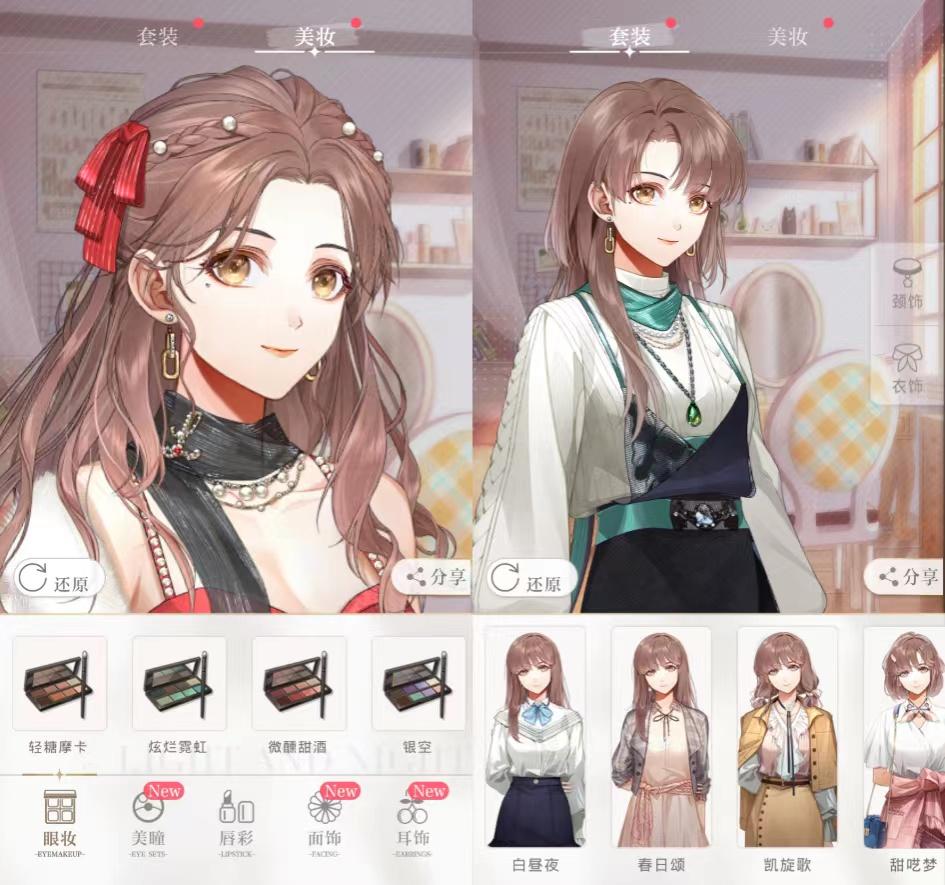 但是在《光夜》内,玩家购买的外观以套组形式出现,玩家只能在瞳色、妆面等细节处选择颜色调整,对比之下玩法显得有些单薄。