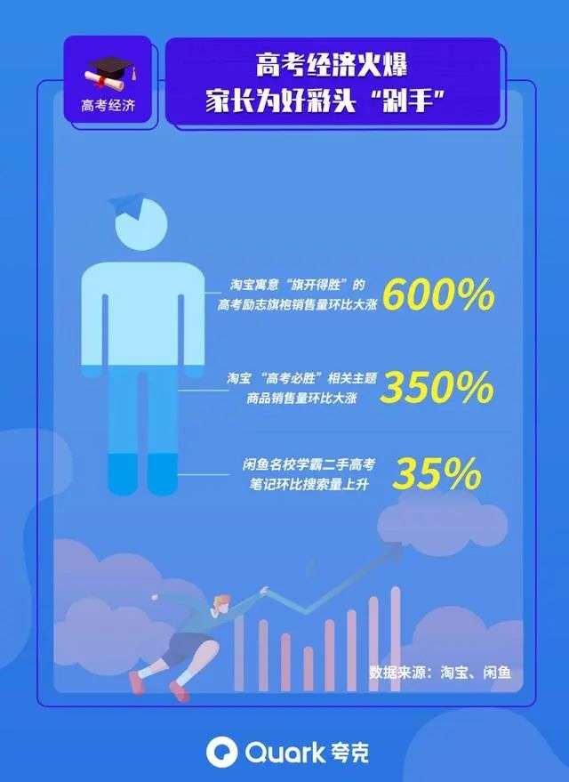 考前一个月,寓意“旗开得胜”的高考励志旗袍,在淘宝销售量环比大涨600%,“高考必胜”相关主题商品销售量大涨350%。