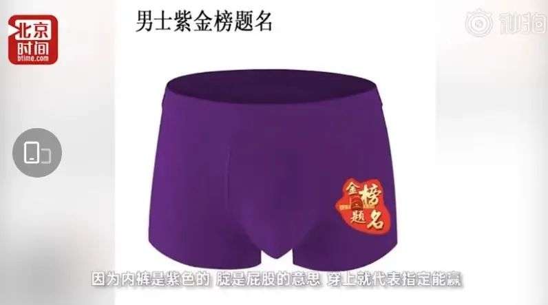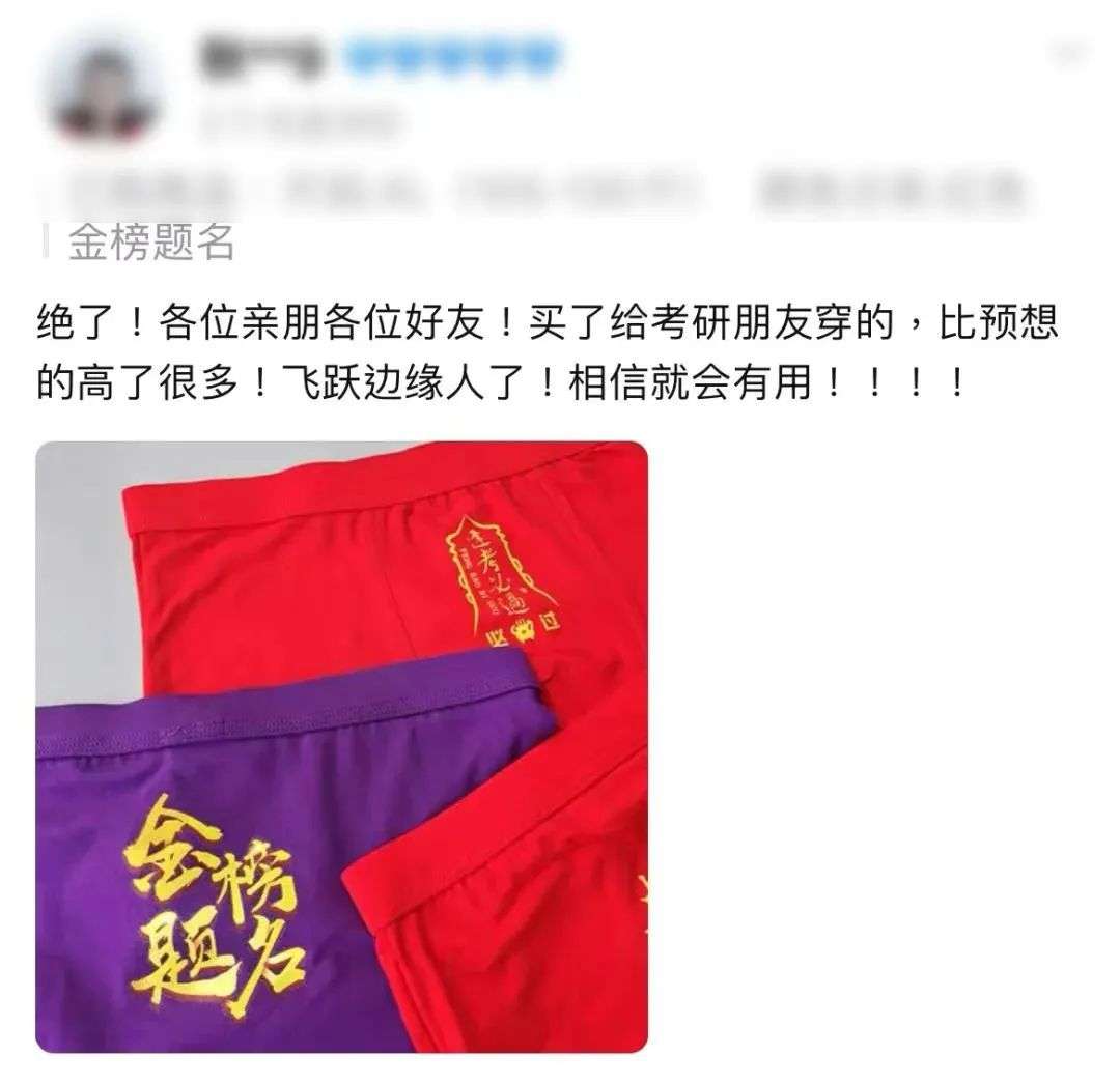 鲜红色的对勾、金色的“逢考必过”字样印在内裤上,穿上便能在走进考场的那一刻获取气定神闲的自信。