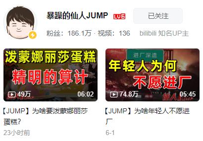 原因之一当然是他太忙了,这个微信名为张小胖的90后,运营着半佛仙人和仙人JUMP这两个账号,光在B站和微信公号两个平台的粉丝加起来就已经超千万了,每天找他的人和事儿都太多了。比如我们约好的时间是下午5点,开始几分钟了,他才结束一个跟甲方的会,据说还battle了一番,“最后成功被甲方用钱说服”。