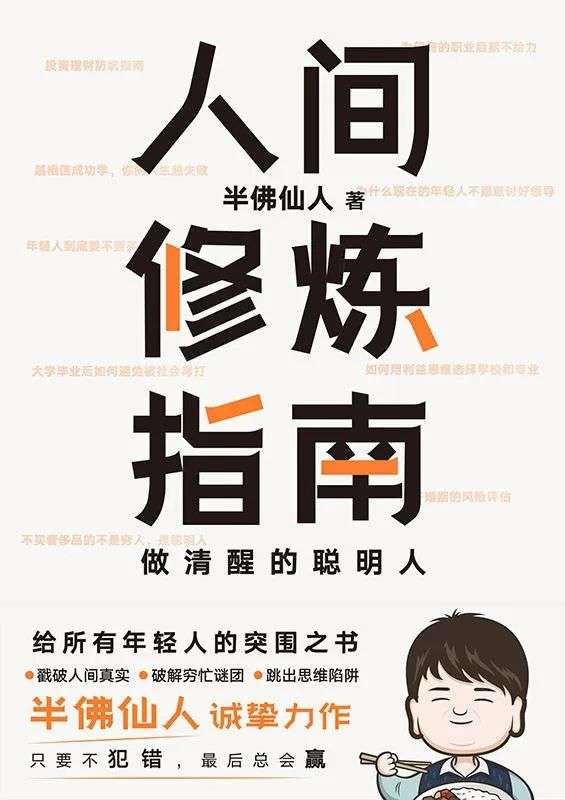 写作是他真正喜欢的事情,而财富是他认为的一个人的骨架和基石。现在,又有了一个升华——前阵子,半佛出了本书,《人间修炼指南》,一册文章合辑。