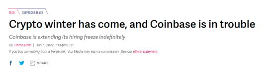 加密货币冬天已来,Coinbase陷入困境