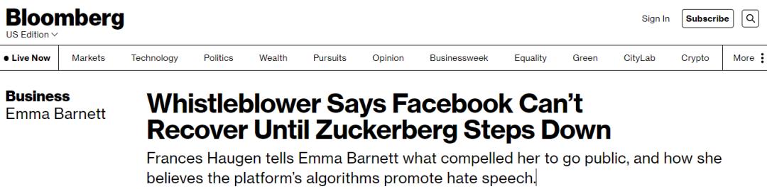 豪根表示,脸书的算法推动了仇恨等言论的蔓延,并将青少年等用户群体导向有害内容。有证据显示,该公司对其产品可能会带来的风险心知肚明,但是他们却没有与之适配的应对措施。Meta如果想要恢复元气,那么其掌舵人扎克伯格必须下台。