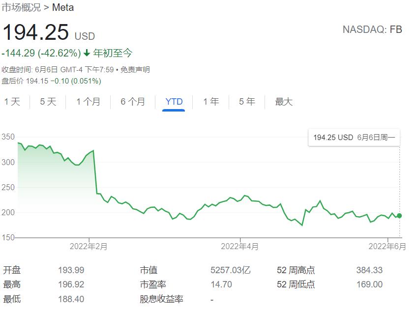 昨日收盘,Meta股价收报194.25美元 谷歌财经截图