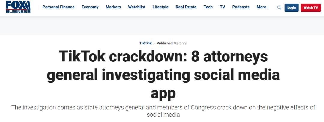 今年3月,包括加利福尼亚州和马萨诸塞州在内的美国八个州宣布,他们已经在全国范围内对中国字节跳动旗下TikTok发起了一项两党联合调查,重点是调查TikTok是否对年轻人的身体或心理健康造成伤害。