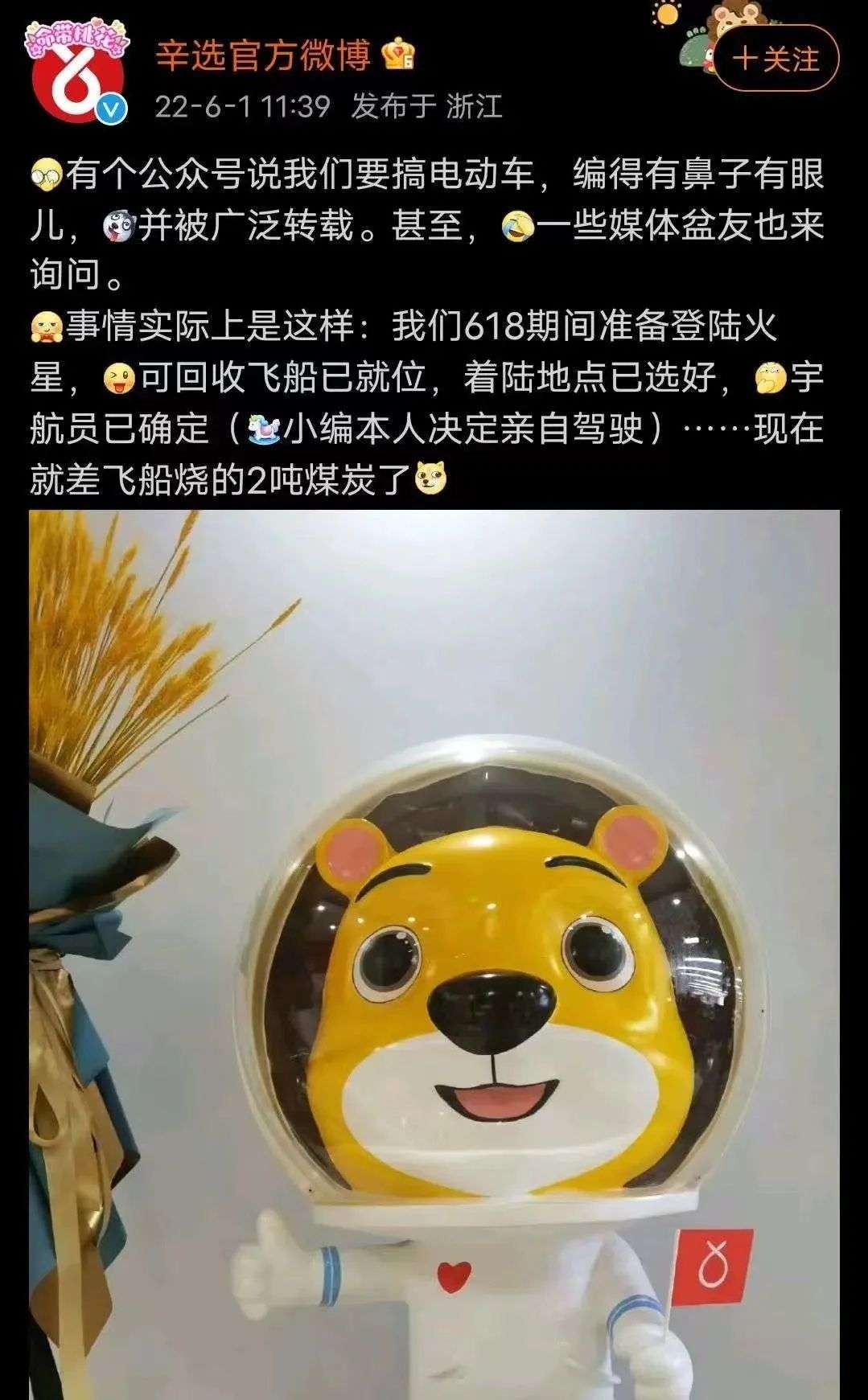 虽然两天之后的6月1日,辛巴即通过辛选公司在微博发布辟谣信息,称造车一说子虚乌有。但更多的网友还是更愿意相信,这大概率又是辛巴自导自演的一出“好戏”。