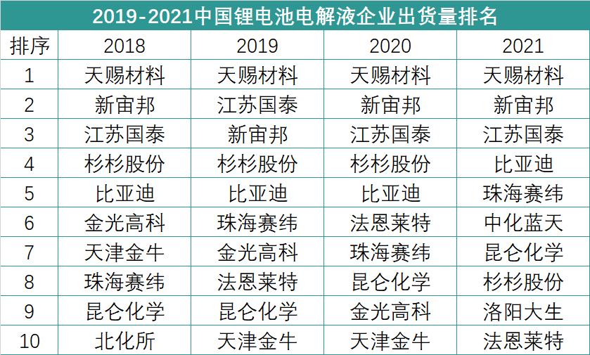 究其原因,一方面是由于2015年白名单的发布,国外电池厂商不得不离场,失去了“大腿”的新宙邦也很快被收购了东莞凯欣(宁德时代主要供应商)的天赐材料反超,后者成为了电解液出货量第一。