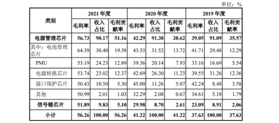 2019年,微源半导体的电池管理芯片毛利率仅为41.71%,而后逐年上升到2021年的64.39%超过微源半导体的平均毛利率56.26%,是所有产品中毛利率最高的产品。