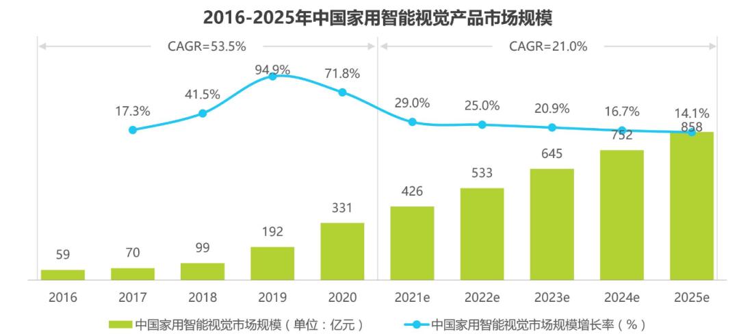 首先要明确的是,最近几年随着智能家居市场不断发展壮大,家用智能视觉产品是成长最迅速的赛道之一。