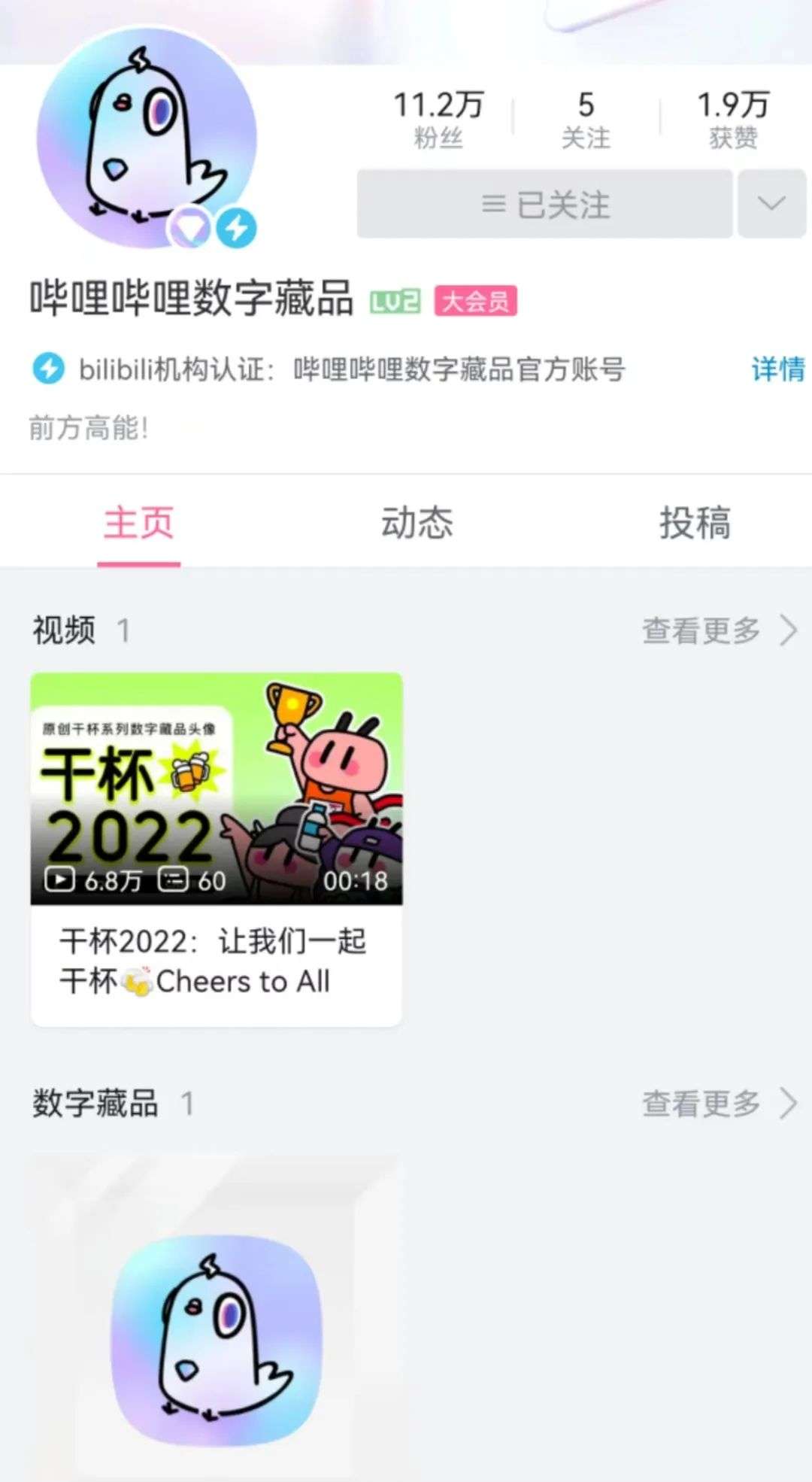与爱奇艺一样,B站也并未在平台端建立入口,而是由账号“哔哩哔哩数字藏品”进行运营,今年1月至今一共只推出过四款藏品(其中冷鸢十周年纪念藏品发行方为虚拟主播冷鸢yousa),除了“干杯2022数字藏品头像”发布了7767件,其他发行数量都在2000-3000件。