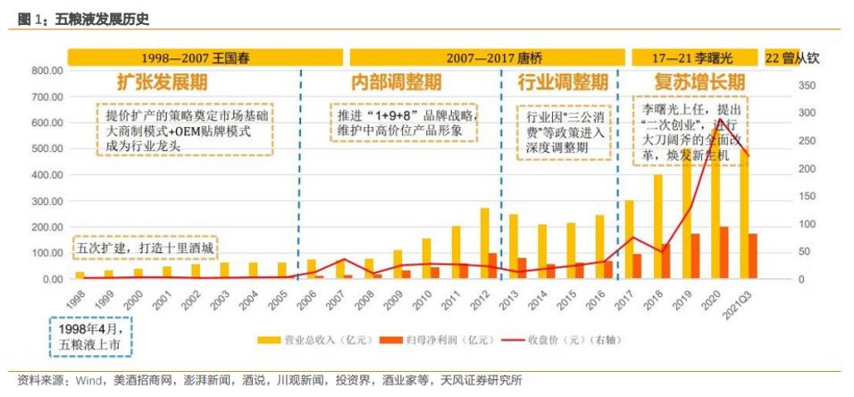 在这一连串组合拳下,五粮液一路超越泸州老窖、山西汾酒和茅台,在1994年成功晋级为白酒第一品牌。