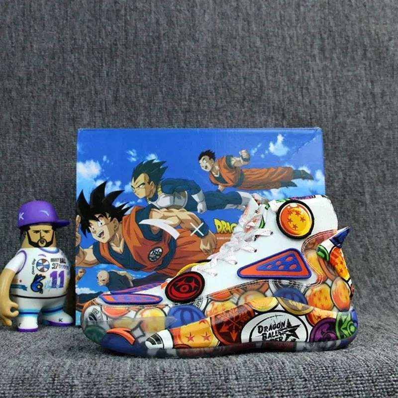 2019年,安踏与《龙珠超》进行了联名,售价在300~500元区间的总共12款实用性鞋款对应孙悟空、贝吉塔、弗利沙以及“黑悟空”扎马斯的各个形态。联名鞋从这些角色中分布提取辨识度高的元素,包括配色、道具、日文名,遍布鞋面、鞋舌、鞋垫、鞋纸和鞋盒,可以说是非常良心的设计。