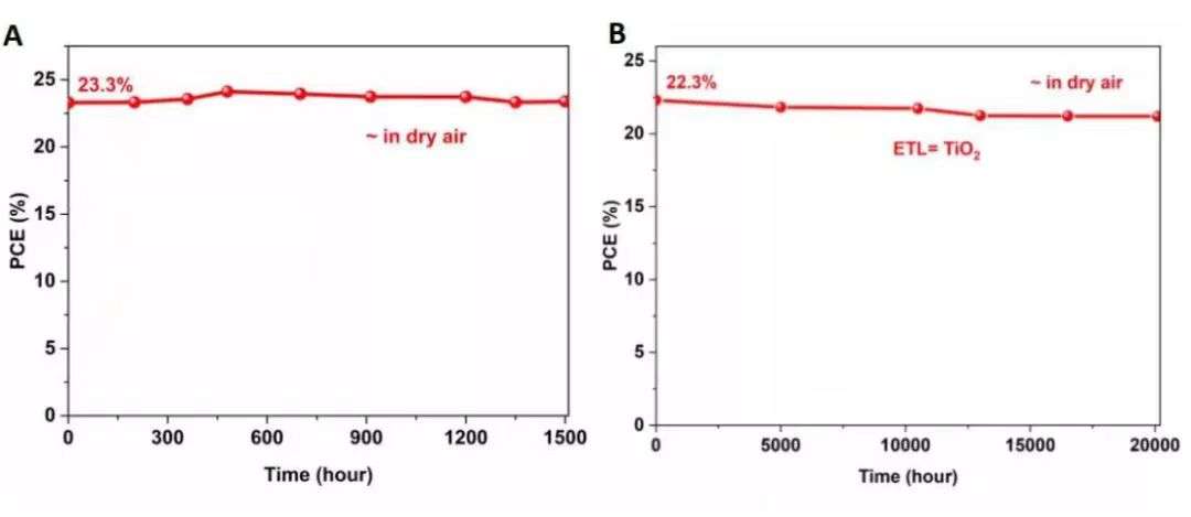 在钙钛矿太阳能电池的研发上,公司研发团队通过对钙钛矿太阳能电池薄膜与OLED薄膜的对比研究,创新性的提出使用真空气象沉积的钙钛矿薄膜制备技术,实现了大面积单节钙钛矿太阳能电池超过23%的世界最高认证效率(PCE);同时,研发团队通过调整电池结构的设计、改进电池的封装方法,大幅提高了电池的长期光、热、湿度稳定性,未封装的电池在干燥空气中放置20000小时之后仍保持了95%的初始光电转换效率,有效的解决了制约钙钛矿太阳能电池商业化的寿命问题。