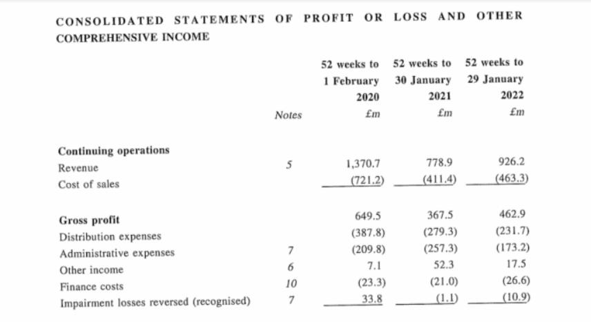 其2021年财报显示,公司销售额因在2021年闭店数月而锐减,亏损金额达到1.5亿英镑。