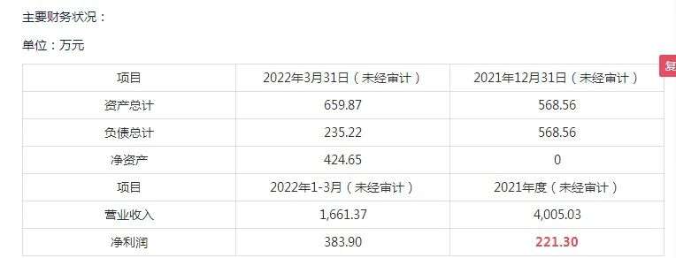 2021年度,齐育未来营收为4005.03万元,净利润为221.30万元;今年一季度,齐育未来营收为1661.37万元,净利润为383.90万元。截至一季度末,公司总资产为659.87万元,净资产为424.65万元。