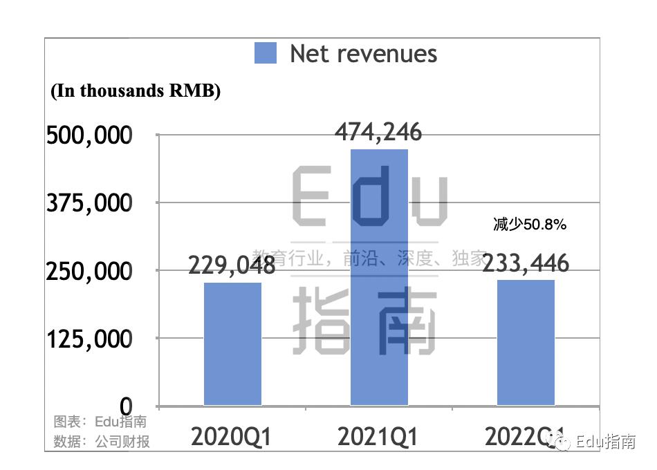 根据季报,一起教育公司2022年Q1营收为2.33亿元(约为3680万美元),同比2021财年Q1的4.74亿元,营收减少50.8%。本季度营收略高于2020财年Q1的2.29亿元。