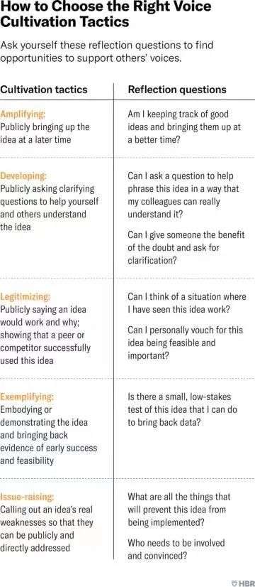 有时,给出一个想法,也需要及时的沟通,这有利于将好想法进一步发展。我们看到团队成员通过提出解释、剖析问题来让那些被拒绝的想法重新被采纳,这些问题有助于团队成员和领导者更好地理解它们。这种策略在跨学科团队中特别有用,来自不同职业和性别的人经常使用不同的行话和语言模式相互交谈。一个对某些团队成员来说很突出的想法所带来的困难和机会,对其他人来说可能是看不见的。发展彼此的想法有助于使它们在整个团队中清晰可辨。