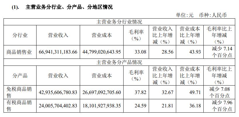 尽管从业绩来看2021年中免实现了大幅增长,但是由于去年海南也受到疫情影响,再加上海南免税企业的增多,中国中免也受到一些影响。根据中国中免财报,2021年其免税商品销售营业收入为429.36亿元,销售营业成本为266.97亿元,营业成本比上年增长49.71%,毛利率37.82%,但比上年减少7.08个百分点。由此来看,虽然免税商品增多了,但是毛利却减少了。这也意味着未来市场的竞争日趋激烈。