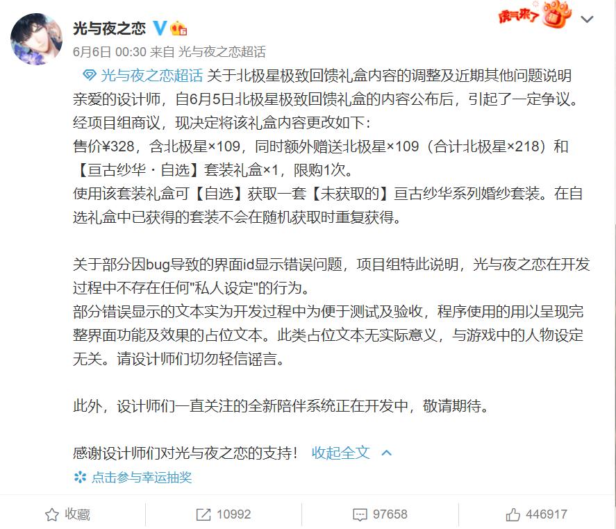 《光与夜之恋》官方的二次回应