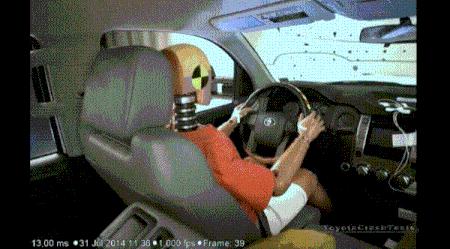 汽车碰撞安全气囊弹出测试 图片来源:丰田